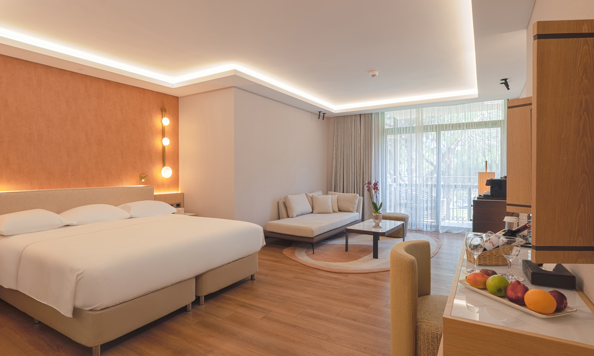 Eine der luxuriösen Unterkunftsmöglichkeiten im Gloria Golf Resort, die Junior Suite, bietet Ihnen ein komfortables und perfektes Urlaubserlebnis im Herzen der Natur.